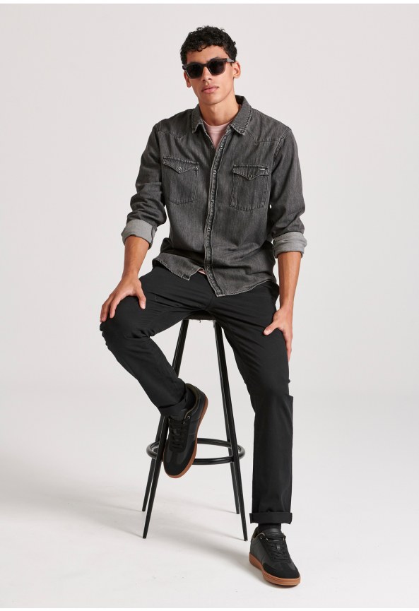 Slim tapered fit τζιν παντελόνι με ελαφρύ ξεθώριασμα