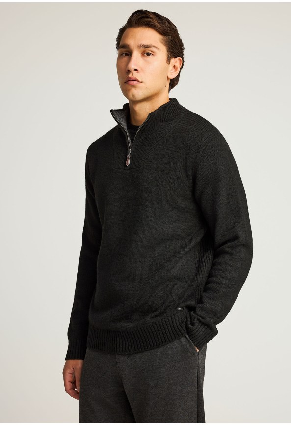 Half-zip πλεκτή μπλούζα με waffle weaving pattern