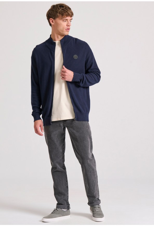 Ανδρική μονόχρωμη ζακέτα με κουκούλα σε πλεκτό ύφασμα
