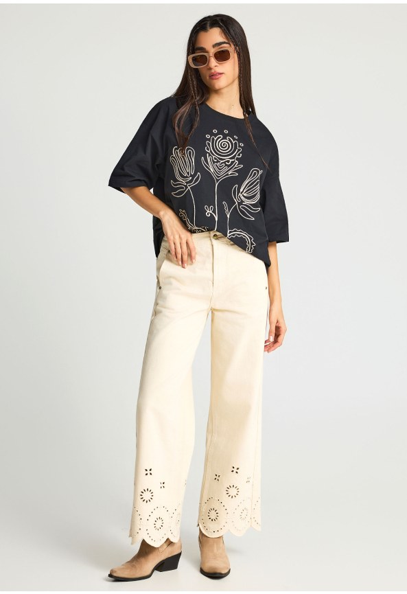 Γυναικεία wide leg παντελόνα από βαμβάκι