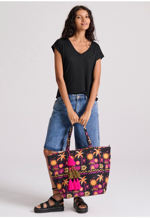 Relaxed fit t-shirt με boho τύπωμα