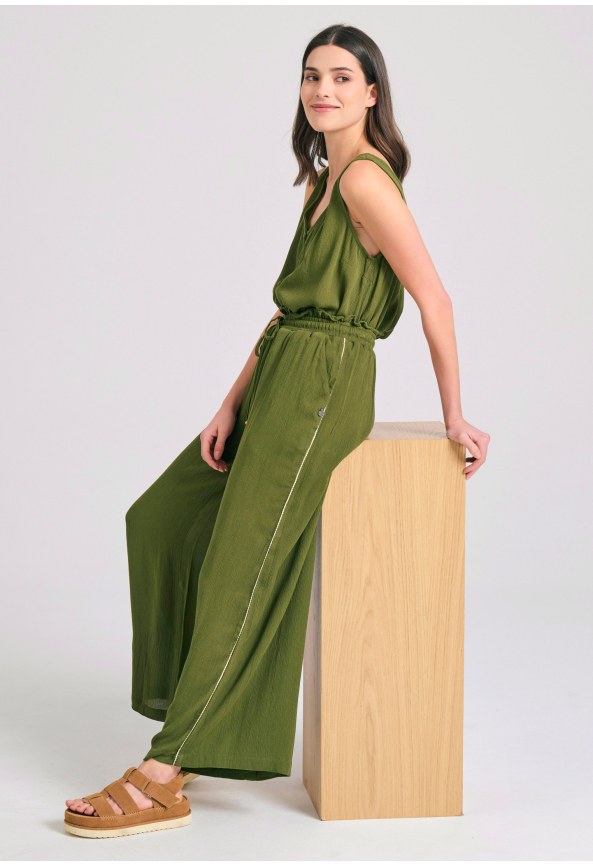 Wide leg παντελόνα με πλαϊνό κέντημα
