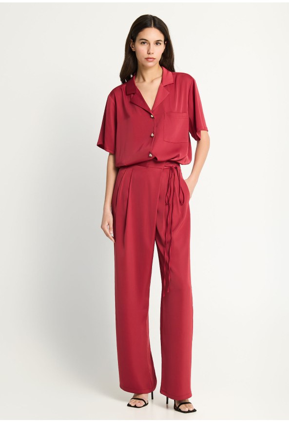 Linen blend wide leg παντελόνα με ελαστική μέση
