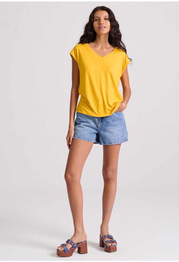 Γυναικείο V-neck μονόχρωμο t-shirt - The essentials
