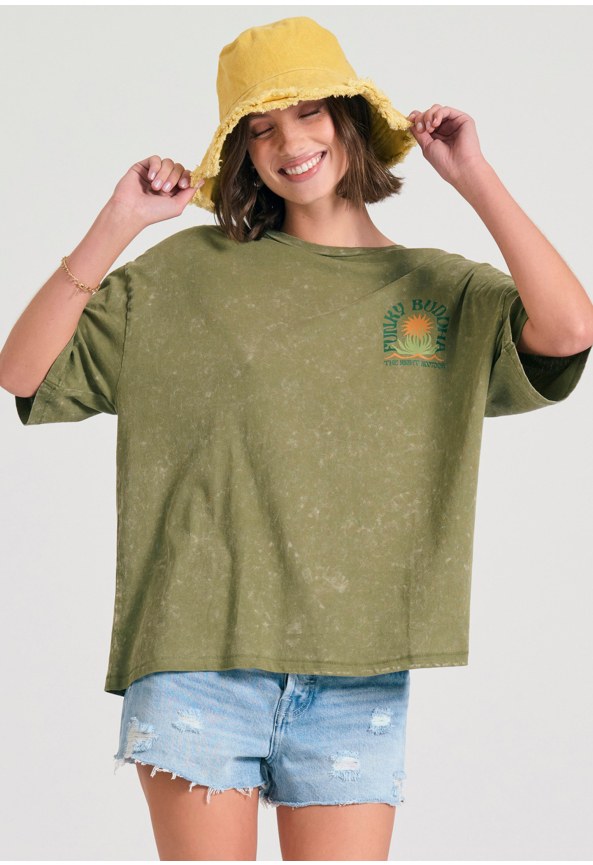 Ανακάλυψε μια ευρεία γκάμα από γυναικεία t-shirt με τύπωμα σε σχέδια και χρώματα που θα σε ενθουσιάσουν. Τα γυναικεία t-shirts είναι ιδανικά για κάθε περίσταση, είτε αναζητάς ένα κομψό σύνολο για μια βραδινή έξοδο, είτε ένα άνετο ρούχο για την καθημερινότητα. Δημιούργησε το τέλειο outfit με τα κατάλληλα παντελόνια και πουκάμισα, που μπορούν να συνδυαστούν για να τραβήξεις τα βλέματα όλων. Επιπλέον, έχουμε μια εξαιρετική συλλογή από γυναικεία αξεσουάρ, τα οποία θα συμπληρώσουν την εμφάνισή σου. Δημιούργησε το τέλειο Funky Buddha casual look για κάθε περίσταση. Είμαστε εδώ για να κάνουμε τις αγορές σου ευκολότερες και πιο διασκεδαστικές!