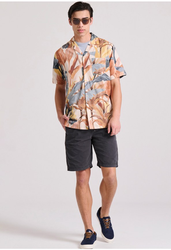 Garment dyed chino βερμούδα σε ζακάρ ύφασμα