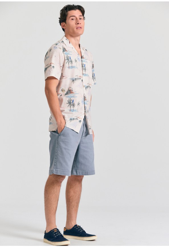 Relaxed fit resort λινό πουκάμισο