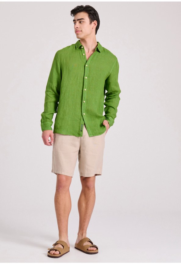 Garment dyed κοντομάνικο λινό πουκάμισο - The essentials