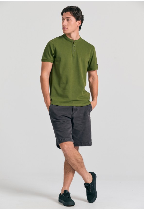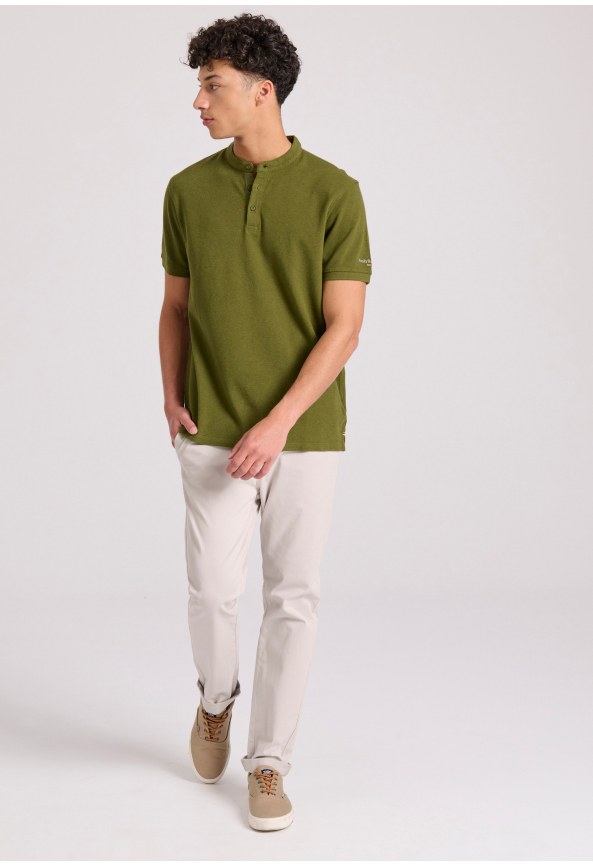 Μπλούζα polo με λαιμό mao και κέντημα στο μανίκι