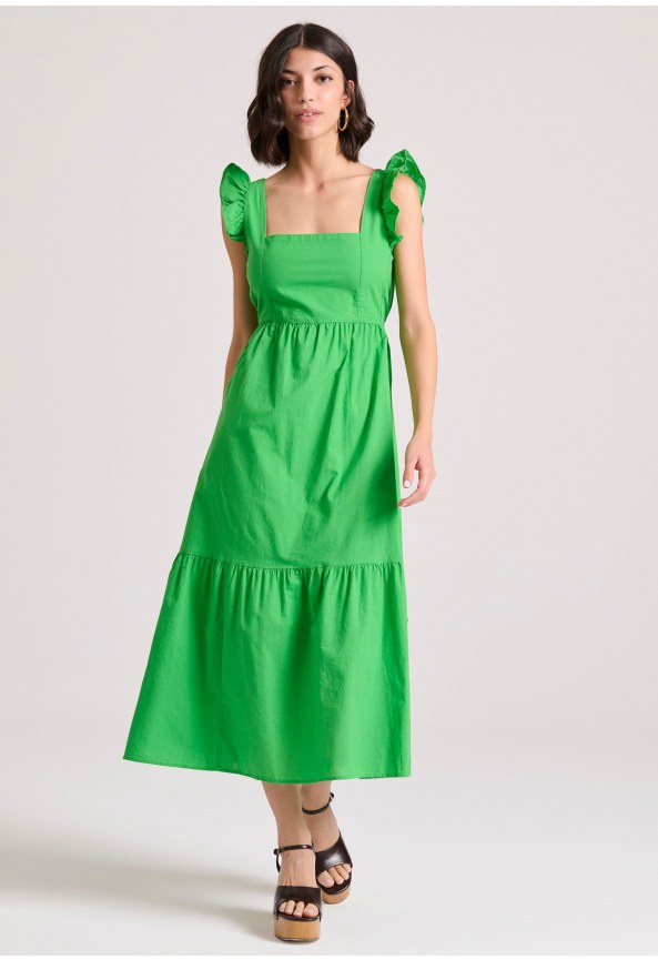 Σεμιζιέ εμπριμέ μάξι φόρεμα με βολάν σε boho look