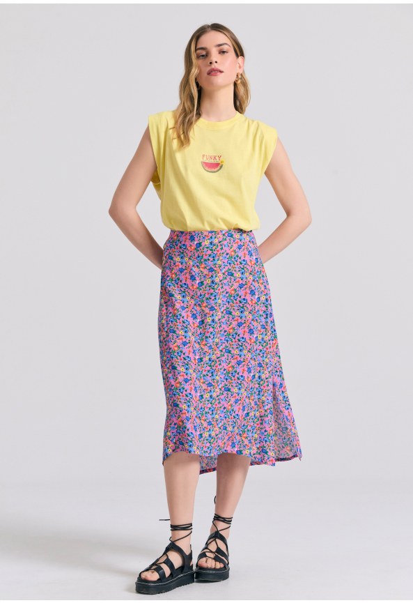 Φλοράλ μίντι φούστα από βισκόζη