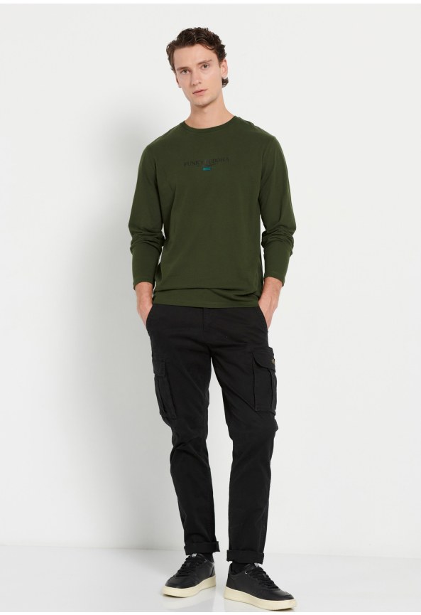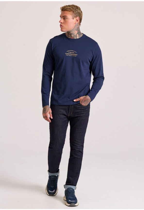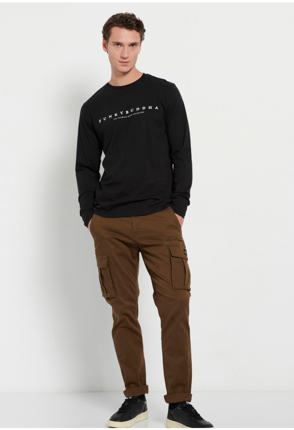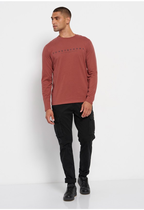 Long-Sleeve T-Shirt with Funky Buddha Chest Print